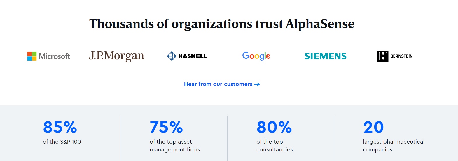 该公司的官网还显示,美股基准股指之一标普100指数中的85家公司是其客户群体,不仅覆盖高盛、摩根大通、富国银行和伯恩斯坦等华尔街金融巨头,也涵盖谷歌、微软和西门子等各行业的顶级领导者,服务各行各业超过4000家企业。