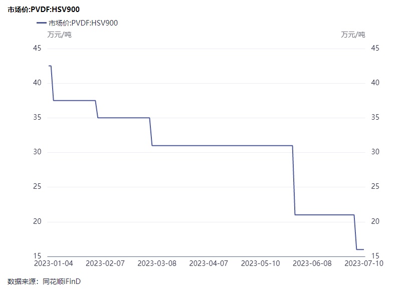 智通财经APP了解到,2023年以来,受供需关系变化等因素影响,PVDF、有机硅等产品价格均有不同程度的下跌。以近年来备受瞩目的PVDF为例,公开数据显示自2023年以来,PVDF的市场价格持续走低,年内跌幅超过六成。