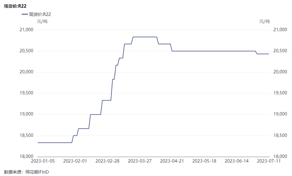 相比之下,制冷剂的产品价格则要强势许多。现阶段,二代制冷剂R22的现货价约在2万元/吨,较今年初上涨了10%左右。
