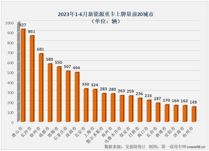 2023年1-6月新能源重卡企业销量表(单位:辆)
