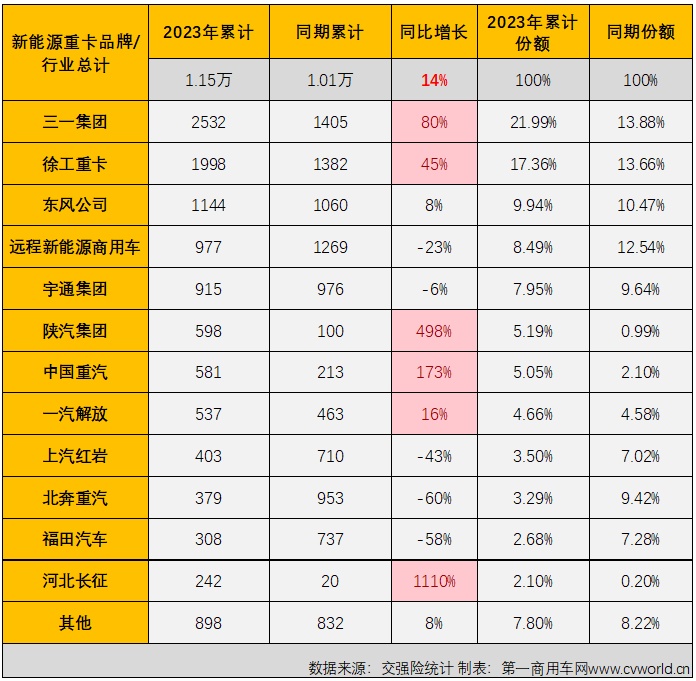 (注:上表为新能源重卡底盘生产厂家销量,改装厂家销量未单独列出)