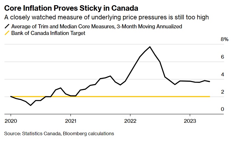 核心通胀在加拿大变得棘手——一个受到密切关注的衡量潜在价格压力的指标仍然过高
