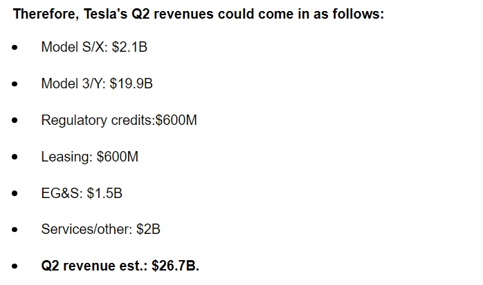 因此,分析师Dergunov预计特斯拉第二季度营收细分数额可能如下所示: