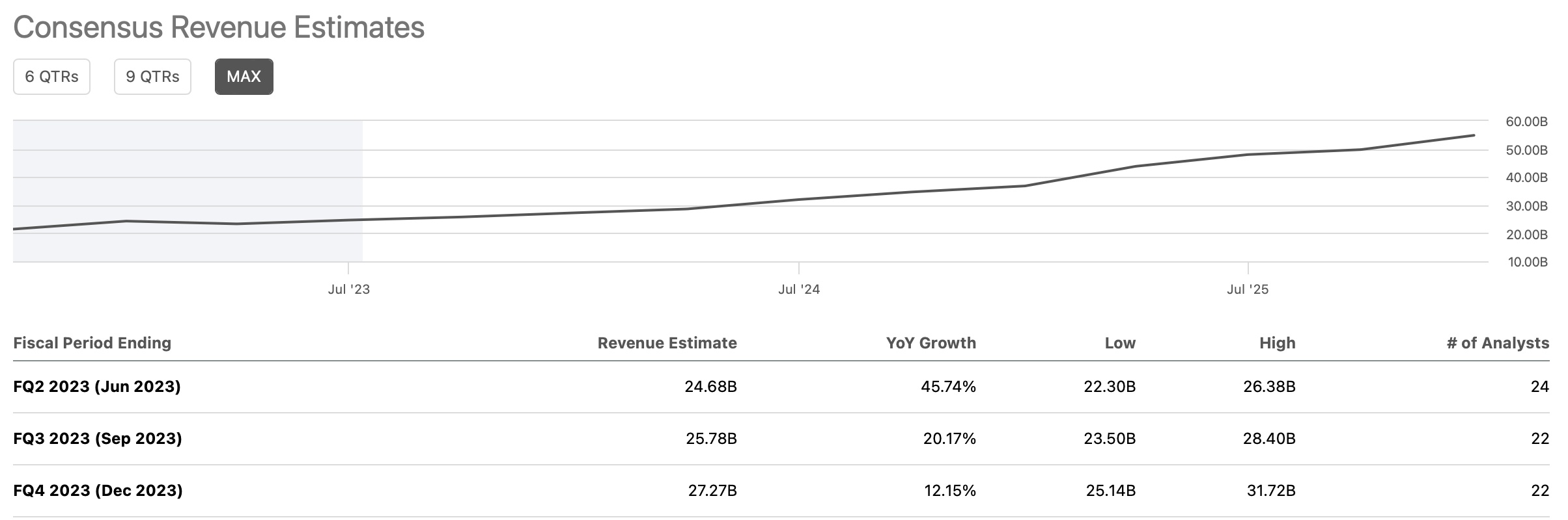 尽管拥有非常稳健的业绩增长预期,但许多分析师对特斯拉的预测可能仍落后于曲线。该电动汽车领导者多年来出人意料地实现了业绩超预期增长,比如特斯拉最近的交付数据好于预期,市场预期第二季度汽车交付量为44 -45万辆,但实际交付量约为46.6万辆。此外,特斯拉未来产品,如和Cybertruck和特斯拉Semi,在未来几年有望提供数百亿美元额外营收。