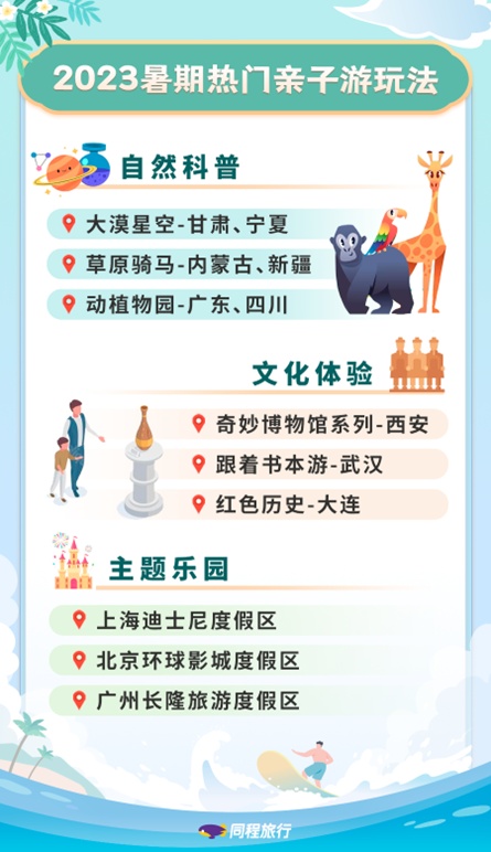 同程旅行也上线了暑期亲子游专题,为游客提供各类亲子、研学旅游产品。其中,自然科普类和文化体验类的研学产品最受欢迎。大漠星空、草原骑马和各地动植物园的科普线路,是孩子们暑期亲近自然的热门选择。在文化体验类产品中,同程旅行推出了“奇妙博物馆”、“跟着书本游”等特色产品,其中,西安的奇妙博物馆之旅、跟着书本游武汉,和大连的红色历史旅游线路最受欢迎。
