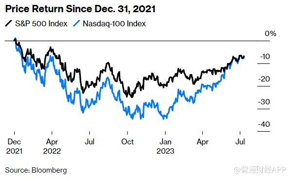 但Bloomberg市场分析师Vildana Hajric和Jeran Wittenstein表示,一些事实表明,在过去的18个月里,市场没有任何变化。当美联储加息引发经济衰退担忧时,主导市场的科技巨头们遭到了重创,而在2023年,曾带崩市场的几家大型科技股一直在推动市场上涨。