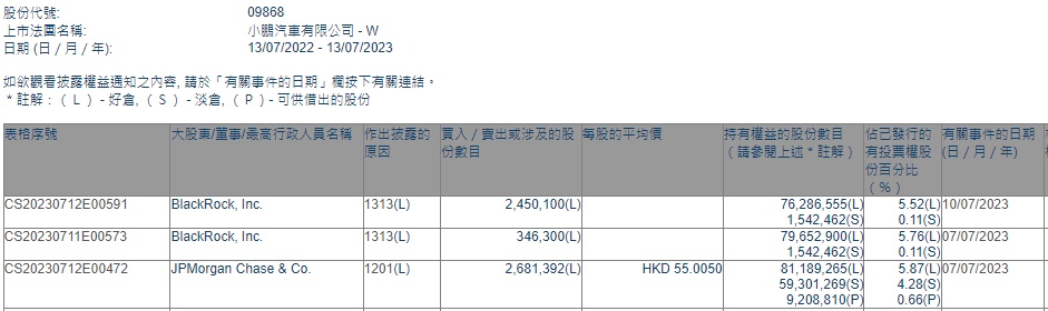 智通财经APP获悉,香港联交所最新资料显示,7月7日,小摩减持小鹏汽车-W(09868)268.1392万股,每股作价55.0050港元,总金额约为1.47亿港元。减持后最新持股数目约为8118.93万股,最新持股比例为5.87%。