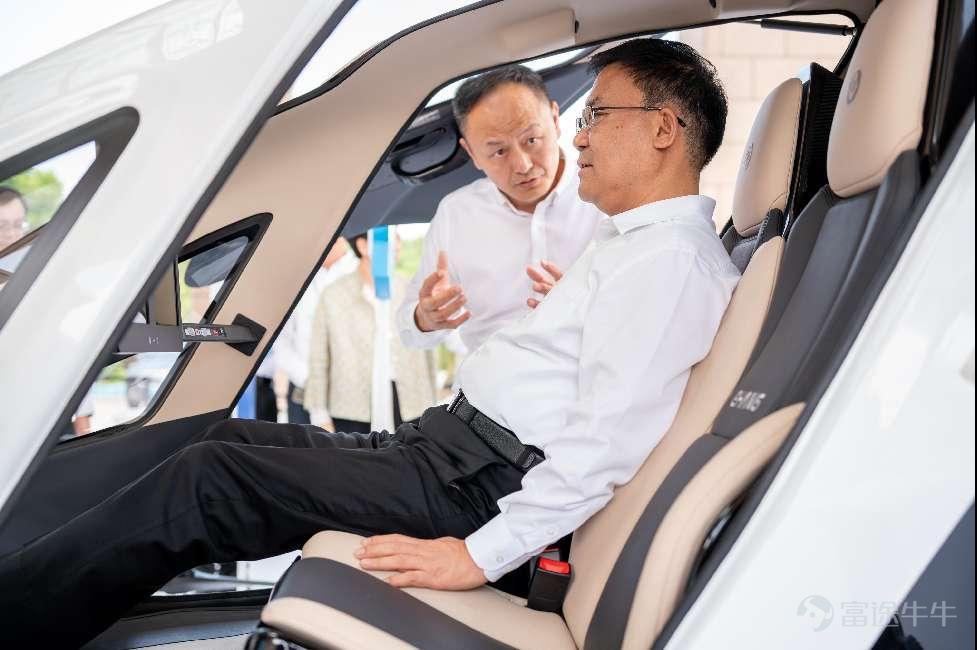 亿航智能首席运营官方鑫向深圳市政府党组成员、副市长人选、宝安区委书记王守睿介绍EH216-S