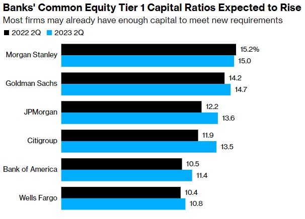 笼罩在所有这些问题之上的问题是,在今年早些时候四家地区性银行倒闭后,美国商业银行还需要留出多少资本金来取悦监管机构。在资本要求提高后,这对派息和回购都会带来冲击。