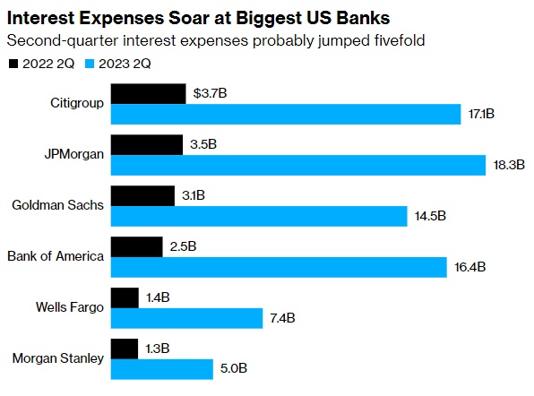 根据分析师估计,美国六大银行的利息支出将从去年同期的155亿美元攀升至约787亿美元。但净利息收入的增长速度预计要慢得多,预计将仅从540亿美元增加到650亿美元左右。