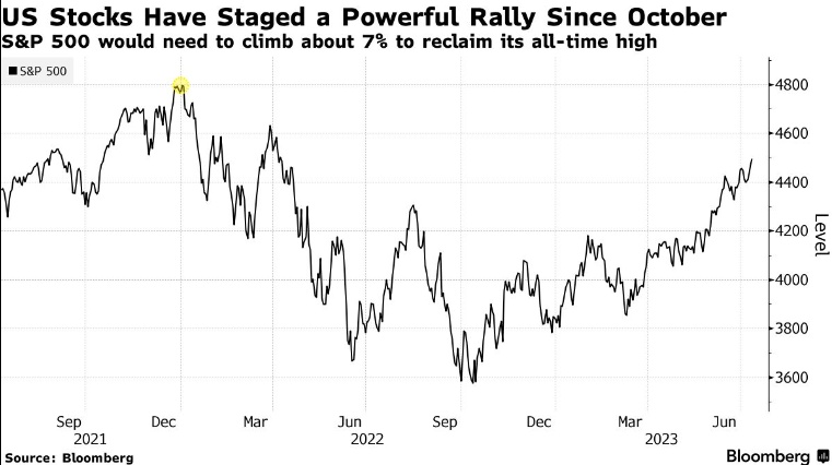 然而,要想实现这一目标,美股则需要延续涨势。随着经济增长和企业盈利好于预期,本轮涨势已经令华尔街大多数投资者感到震惊。该指数在2022年1月创下4,796.56的纪录高点,比上次收盘时高出约7%。