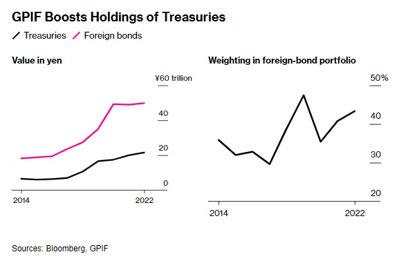 根据对本月发布的最新数据分析显示,在截至今年3月的12个月内,GPIF将美国政府债券和国库券占其外国债券的比例从此前的40.8%增加到43.3%,这是自2020年3月该比例达到47.4%以来的最高水平。