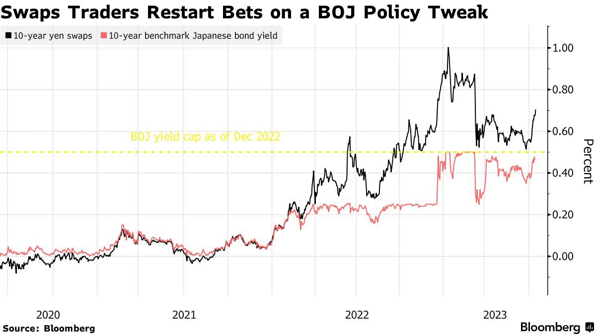 本周,日本基准债券收益率小幅上涨至0.5%的上限,与对全球债券上涨形成了鲜明对比。此外,日本10年期掉期利率周五攀升至0.7%,远超央行设定的同等收益率上限水平。