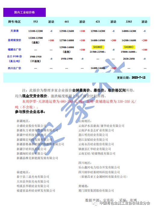 具体来看,丰水期西南地区厂家陆续复产开炉,但是四川地区受高温天气和大运会影响,部分企业被限产或推迟复产。截止本周,四川开炉40余台,远低于往年60余台。另外,北方地区前期检修停炉工厂仍未复工开炉生产,目前疆内仍有30余台炉子处于保温状态。同时,当下国内多数硅厂属于亏损状态,低价出货较少,挺价提价意愿强烈。市场在买涨不买跌的情绪带动下,下游询价采购活跃度有所提升,成交氛围偏好,市场价格上涨。