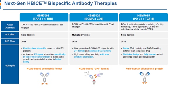 由于能产生不含轻链的全人源重链抗体,HBICE平台拥有良好的灵活性,能生成传统抗体平台难以实现的多种分子结构,这使得我们能实现依靠组合疗法或联合用药无法实现的分子作用机制,最终实现“1+1>2”的效果。