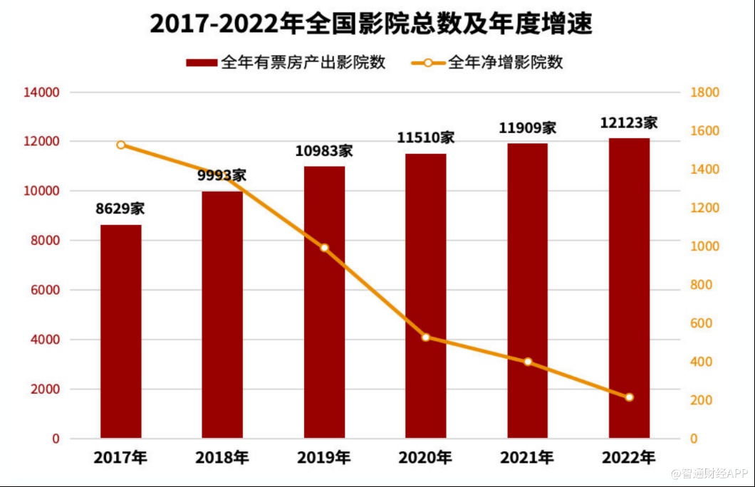 根据猫眼研究院《传媒行业:2022中国电影市场数据洞察》报告,2021年,中国内地电影市场银幕总数突破8万块,高居全球第一。2022年,全球营销总数继续稳步增长至12123家。