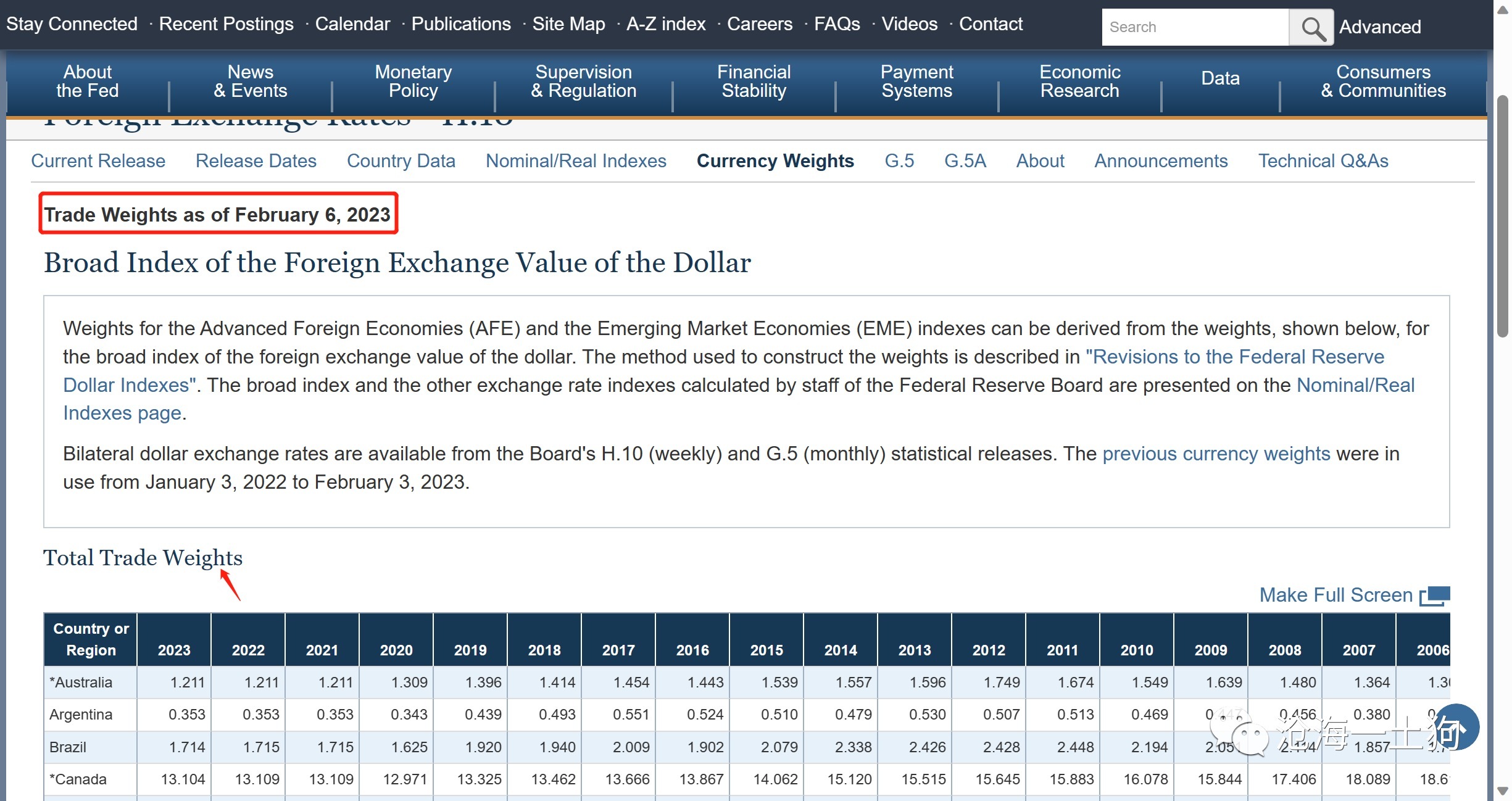 美联储会定期地更新该指数的权重,具体如下: