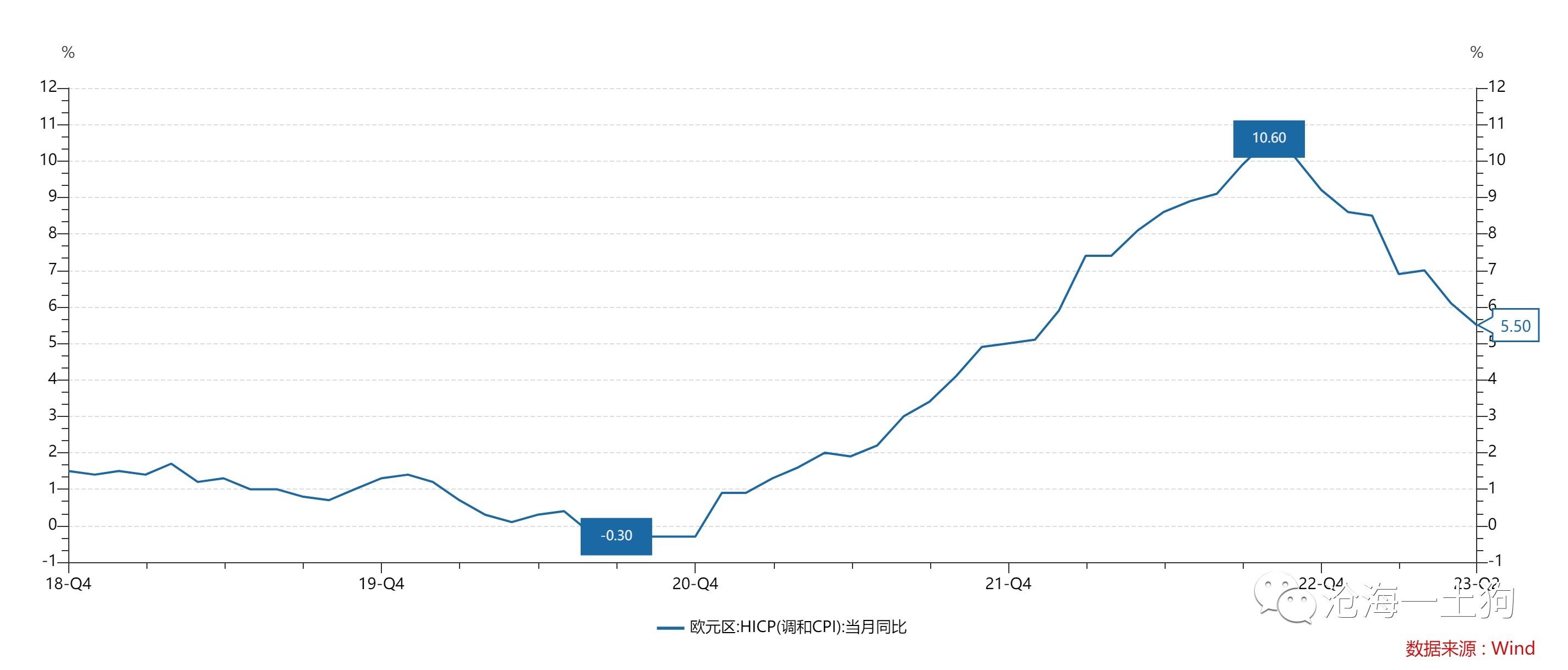 欧洲的通胀实在是太厉害了,它不得不想尽一切办法遏制通胀。压制通胀的核心手段有两个,一个是加息,另一个是升值。这是两个既有关联,又相互独立的手段。