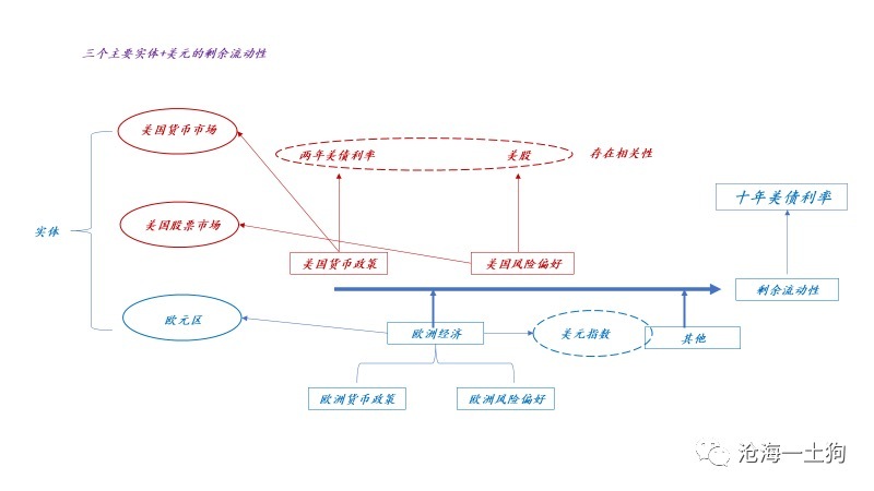 通过这个框架,我们基本上就可以把美元、美元指数和十年美债利率的关系捋顺了,其中,最核心的要旨在于:美元指数代表的是欧元区,十年美债利率才代表美元。