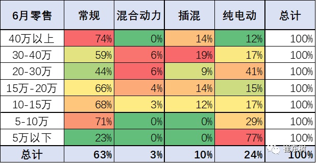 纯电动车随着成本的下降和产品提升,5万以下的电动车与20-30万元以上的电动车表现较强。这其中的特斯拉仍列在20万以上,防止结构波动太大。
