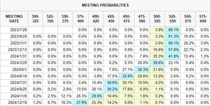 就目前而言,投资者加大了对美联储7月25日至26日会议上加息25个基点的押注,认为这将是美联储在本轮紧缩周期中的最后一次加息。