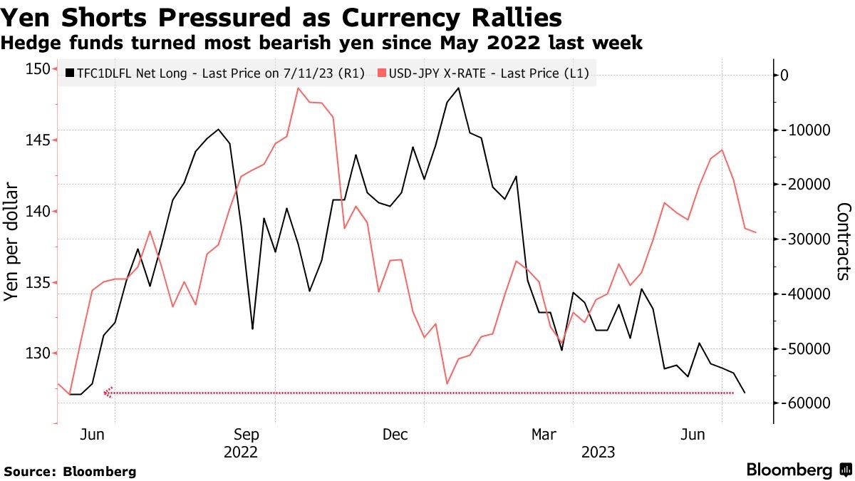 澳大利亚联邦银行报告指出,美元疲软,且市场对日本央行的收益率曲线控制政策变化的押注并未减少的背景下,日元可能在本周继续走高。日元空头头寸平仓可能进一步对美元兑日元汇率产生压力。对冲基金自2021年以来一直看空日元,今年的头寸增加了一倍以上。