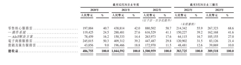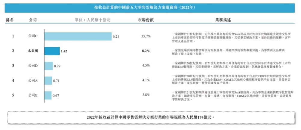 其在招股书中也提到,公司与从与物美集团的合作中开始开展零售数字化业务。通过在物美集团的全国门店网络中实施云解决方案,并进行复杂的运营实践,公司零售云解决方案功能得以升级。