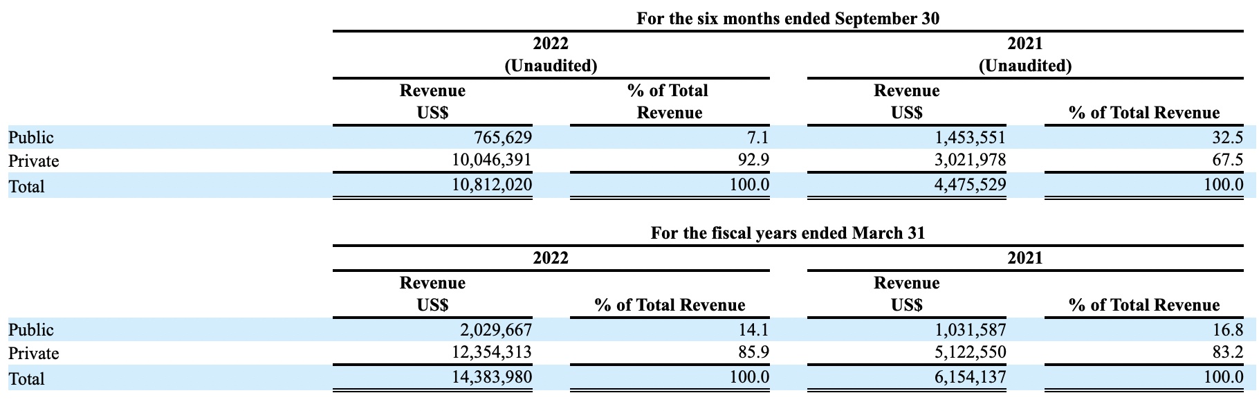 业绩方面,2021财年、2022财年及2023上半财年,明成集团的收入分别为615.41万、1438.40万和1081.20万美元,其中2022财年营收同比大增1.3倍,可见公司业务发展之迅猛。
