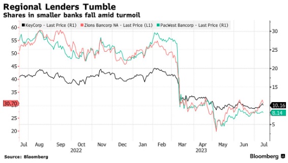 KBW地区银行业指数今年以来下跌了约21%,上半年做空银行的卖空者大举进入银行业,引发了一波又一波的波动。