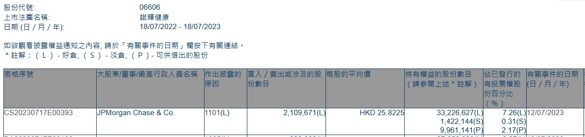 智通财经APP获悉,香港联交所最新资料显示,7月12日,小摩增持诺辉健康(06606)210.9671万股,每股作价25.8225港元,总金额约为5447.70万港元。增持后最新持股数目约为3322.66万股,最新持股比例为7.26%。