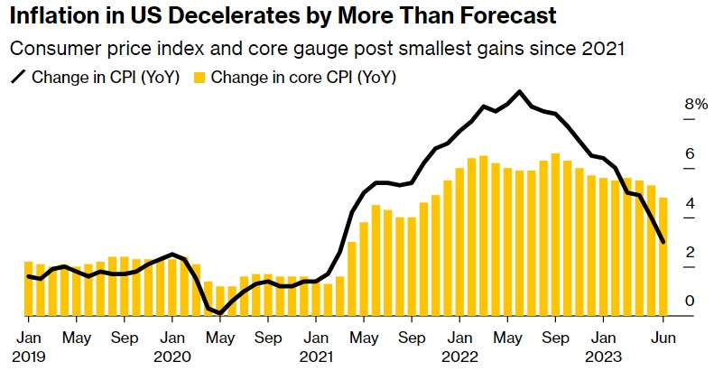 上周的消费者价格指数报告显示,美国6月CPI同比增长3%,是自2021年3月以来的最小增幅,当时美国正处于疫情后通胀飙升的初期,这远低于去年6月9%以上的峰值。剔除食品和能源后,核心CPI较上年同期上涨4.8%。不过,在采访中,耶伦告诫不要过度解读6月份的数据,称其只为“一个月的数据”。