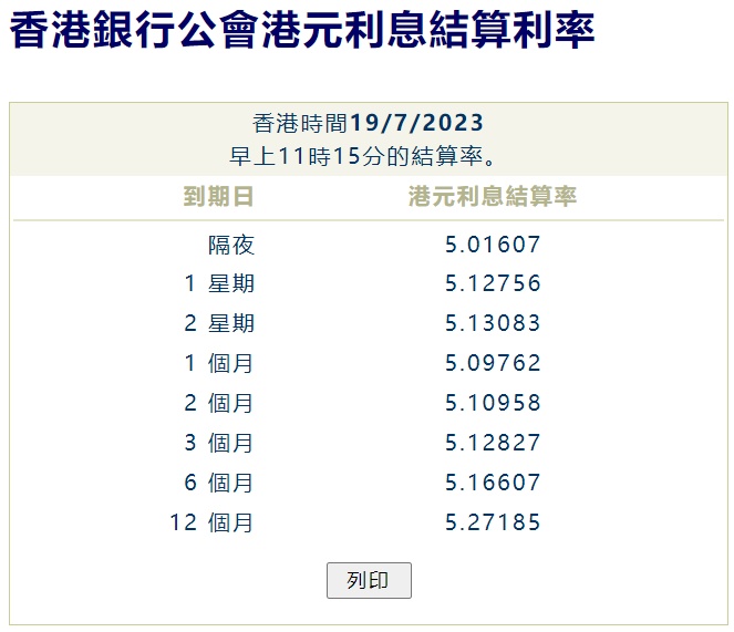 智通财经APP获悉,港元拆息连续两日全线上扬,其中,一周钱重上5%水平,令拆息全线企稳5%。隔夜拆息报5.01607%,而与楼按相关的一个月拆息亦连升三天,报5.09762%,创近一个月新高,与同期美元LIBOR息差收窄至26基点。