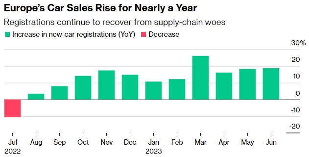 智通财经APP获悉,欧洲6月份汽车销量上升,电动汽车需求增长和零部件供应改善推动了汽车销量连续第11个月增长。欧洲汽车制造商协会周三公布,欧洲6月汽车销量同比增长18.7%至127万辆。纯电动汽车的销量同比飙升55%,而柴油车的交付量下降了10%。