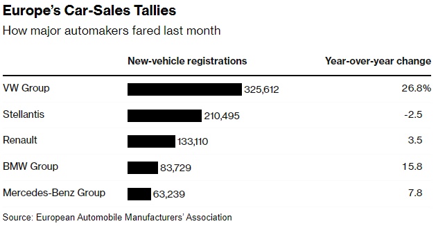 包括所有燃油车型在内,大众汽车在该地区销售的乘用车最多,交付量为325612辆,较去年增长27%。Stellantis(STLA.US)的销量下降了2.5%,至210495辆,但仍排在第二位。而计划扩大其德国工厂产能的特斯拉公司(TSLA.US)售出了47606辆汽车,比一年前增加了一倍以上,超过了当地品牌Fiat和Citroën。