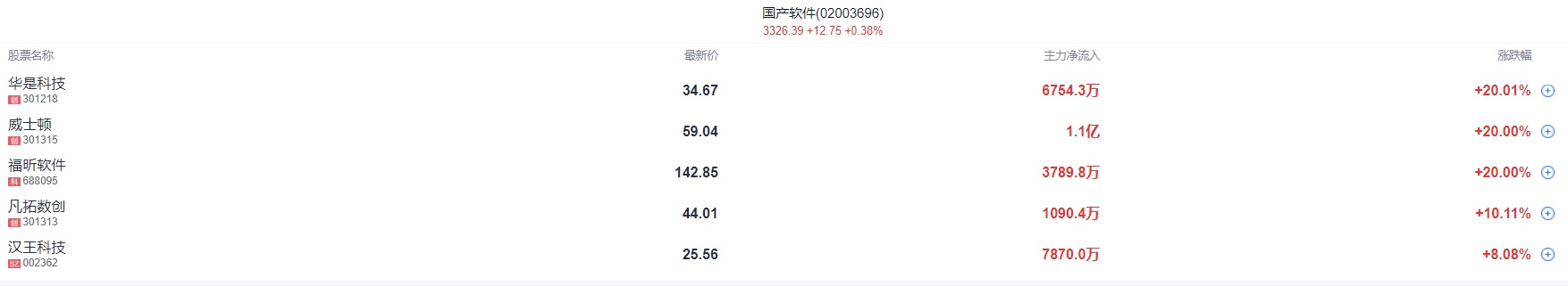 AI赛道集体反弹、云办公、云计算、教育、游戏等应用端领涨,福昕软件20%涨停,金山办公、汉得信息、鼎捷软件、万兴科技、致远互联、新致软件等冲高。