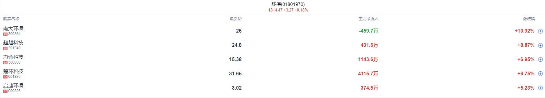 环保板块异动拉升,南大环境一度触及20%涨停,恒誉环保、艾布鲁、清研环境、同兴环保等跟涨。