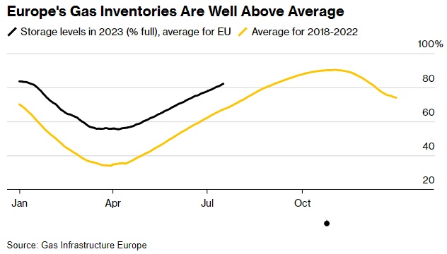 欧洲天然气库存远高于平均水平