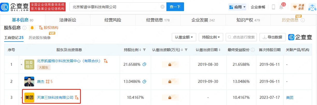 智通财经APP获悉,企查查APP显示,近日,中文认知大模型平台智谱AI关联公司北京智谱华章科技有限公司发生工商变更,股东新增美团旗下天津三快科技有限公司,注册资本由约1480.69万人民币增加到约1652.86万人民币。