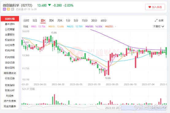这也是微创脑科学上市以来发布首份扭亏为盈的业绩预告,但市场似乎并不买单,截至7月19日收盘,公司股价跌2.03%,报收13.48港元/股。