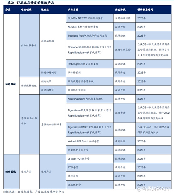 而微创脑科学在研发的候选产品仍为神经介入手术类产品,且多款在研产品预计在2023年获批。
