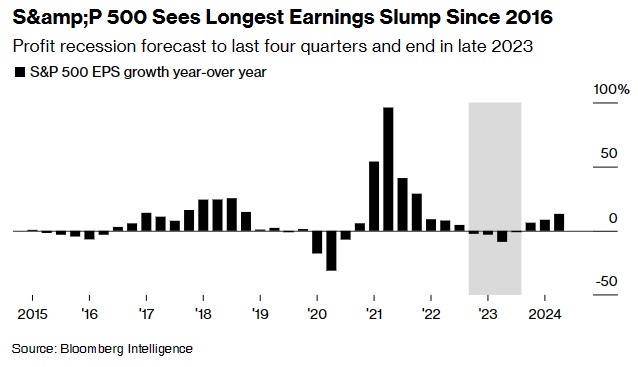 盈利衰退预计将持续四个季度,并在2023年底结束