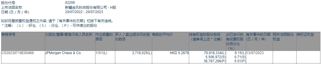 智通财经APP获悉,香港联交所最新资料显示,7月13日,小摩增持金风科技(02208)371.8525万股,每股作价5.2879港元,总金额约为1966.32万港元。增持后最新持股数目约为7081.83万股,最新持股比例为9.15%。