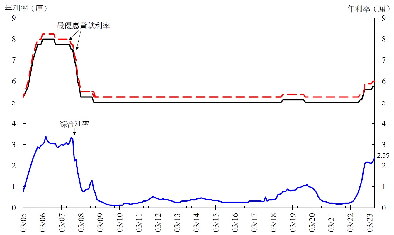 智通财经APP获悉,7月20日,香港金融管理局公布2023年6月底的综合利率。反映银行平均资金成本的综合利率在2023年6月底为2.35%,较2023年5月底的2.20%上升15基点。