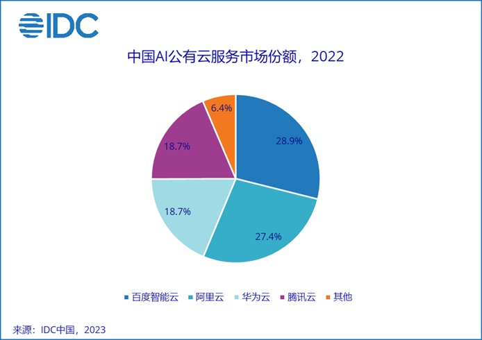 智通财经APP获悉,7月21日,IDC发布《IDC中国AI公有云服务市场份额,2022》报告。报告显示,2022年面对疫情等因素的影响,人工智能市场首次呈现下降趋势,尽管如此,2022年中国AI公有云服务市场还是呈现出80.6%的正增长,整体市场规模达79.7亿元人民币。在2022年中国AI公有云服务市场中,百度智能云、阿里云、华为云、腾讯云位列市场前三。随着AI的产业化落地,市场规模的分布更加均衡,大厂之间的差距也进一步缩小。