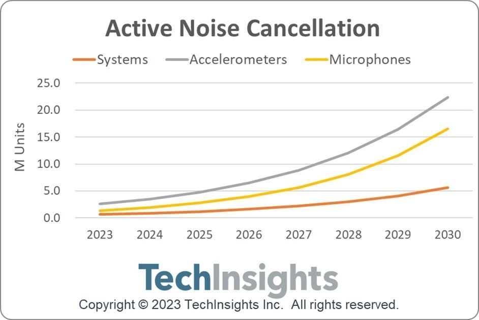 TechInsights对主动降噪系统和相关传感器的需求进行了首次估计: