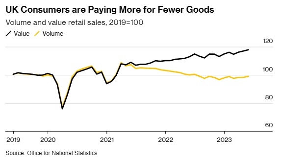 这些数据表明,英国经济正在抵御物价和利率飙升对消费者支出造成的强烈阻力。这些因素,加上对英国央行将继续加息的预期,令经济学家对前景持谨慎态度。