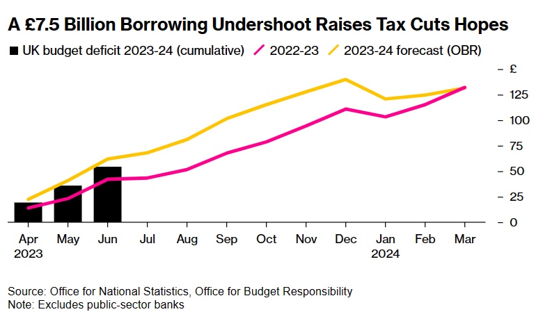 最新的统计数据进一步证明,尽管利率上升和生活成本危机,英国经济比人们普遍认为的更具弹性。此外,4月和5月的赤字都被大幅下调。