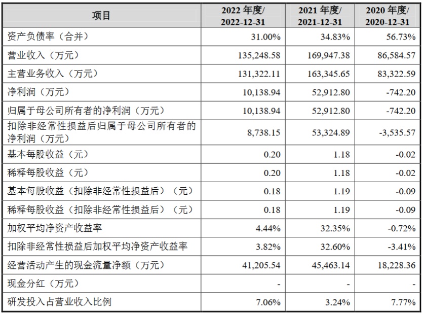 财务方面,于2020年度、2021年度及2022年度,光远新材实现营业收入约为8.66亿元、16.99亿元、13.52亿元;同期,归属于母公司所有者的净利润约为-742.20万元、5.29亿元、1.01亿元。