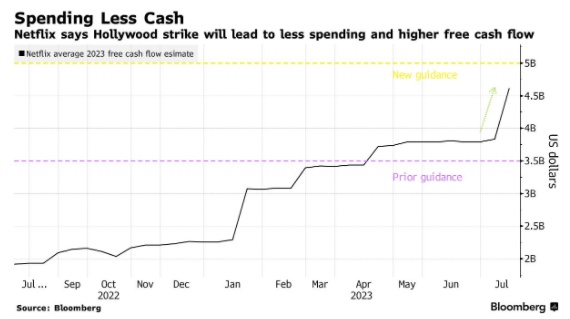奈飞是首家在本周公布季度业绩时直面这一话题的公司。由于罢工导致制作停止,并且削减了开支,这家流媒体巨头提高了对自由现金流的年度预测,但它拒绝说明罢工将如何影响公司的新节目产出。