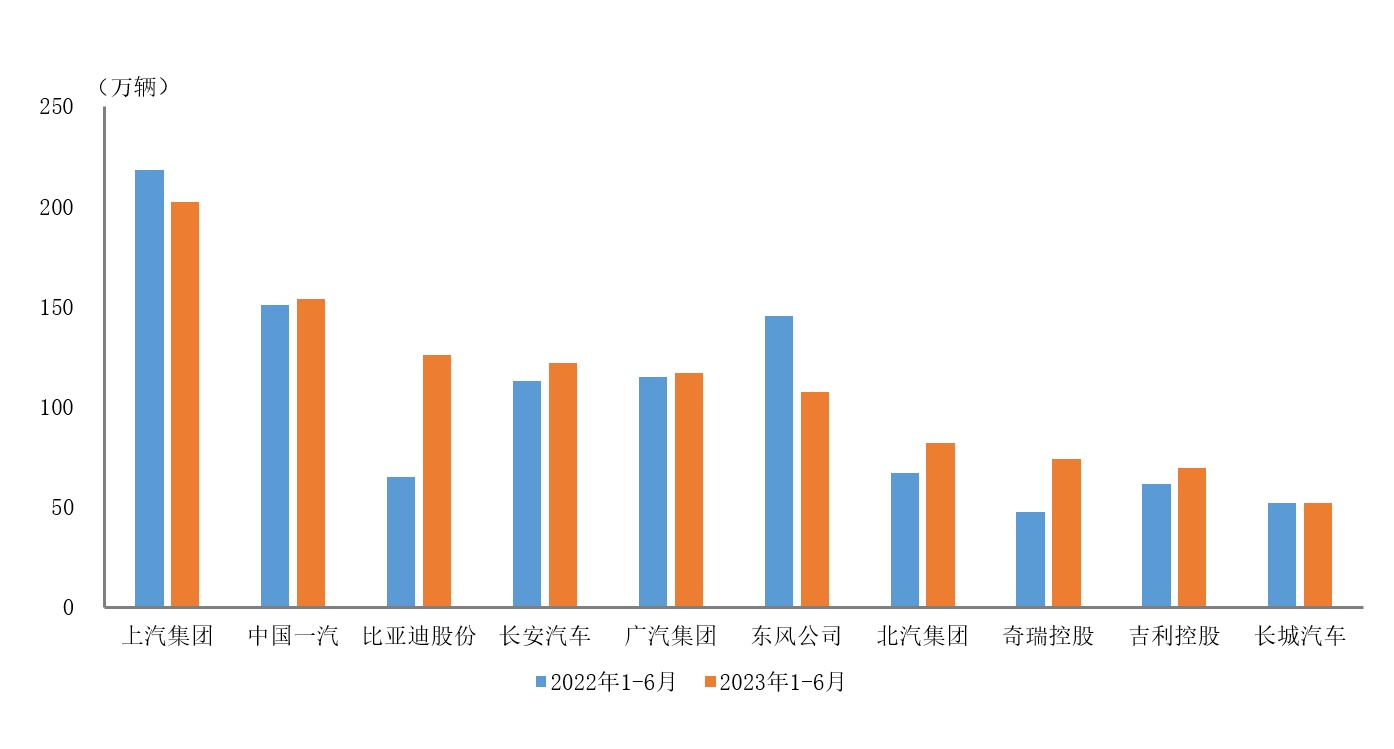 智通财经APP获悉,7月24日,据中国汽车工业协会统计分析,2023年上半年,汽车销量排名前十位的企业(集团)共销售1104.3万辆,占汽车销售总量的83.43%。在上述十家企业中,与上年同期相比,比亚迪股份销量增速最为显著,奇瑞控股、北汽集团和吉利控股也呈两位数较快增长,中国一汽、长安汽车和广汽集团小幅增长,长城汽车微增,其他企业呈不同程度下降。